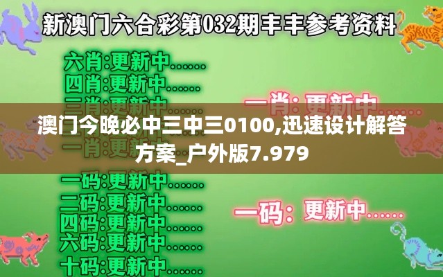 在澳门特别行政区,各种经济活动和彩票游戏因其独有的地域特色而备受瞩目。其中,“必中三中三”作为一种娱乐游戏,融合了碰运气与小额投注的特点,受到广大居民的欢迎。今晚,澳门将再次开展这一活动,为参与者带来激动人心的体验。针对这一活动,迅速设计了一份户外特别版解答方案,以满足不同参与者的需求,确保活动的顺利进行。以下是我们的详细解答方案。