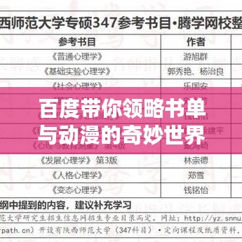 在这个充满创意与想象力的世界,动漫与书籍一直是我们追寻梦想与冒险的乐园,让我们通过百度的指引,一起探索那些引人入胜的书单图片与动漫的精彩瞬间。