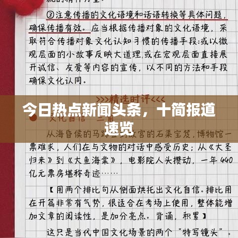 简要概括如下:全球经济稳中向好,科技创新成果显著;疫情防控形势向好,教育改革政策实施;新能源汽车市场蓬勃发展,环保政策加强;房地产市场调控收紧,国际文化交流活动丰富;网络安全法规完善,农业科技创新助力乡村振兴,今日新闻头条传递出积极信号,展现国家发展活力。