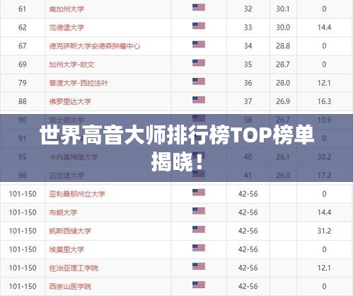 是世界高音大师排名中的部分代表,这些高音大师以其独特的音乐风格和出色的高音技巧征服了全球观众的心,他们用音乐诠释了生活的美好,用嗓音演绎了人生的精彩,无论是激昂的高音还是柔和的旋律,他们都为世界音乐的发展做出了巨大的贡献。