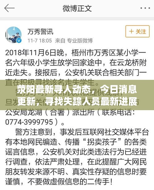 随着社会的不断发展,人们之间的信息交流变得越来越重要,在荥阳这座美丽的城市,每一天都有新的消息在传递,其中就包括寻人的信息,本文将为您带来荥阳今日寻人的最新消息,让我们一起关注这些动态,帮助寻找失散亲人的人们实现他们的心愿。