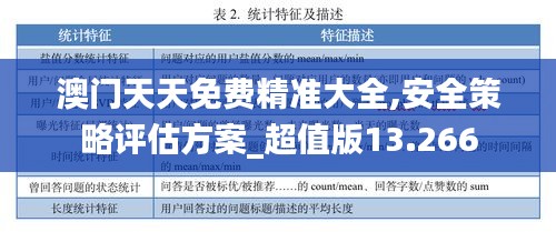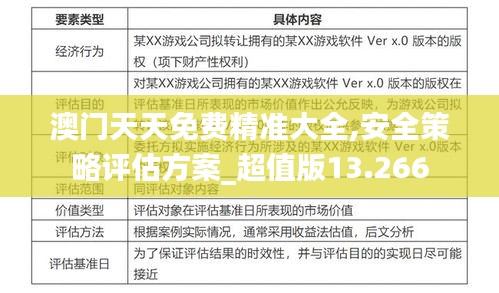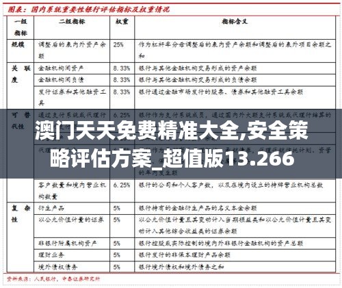 澳门特别行政区作为中国的一个特别行政区,在政策制定和实施方面有着独特的优势。为了进一步发挥澳门在区域发展中的重要作用,促进澳门经济的持续健康发展,特制定"澳门天天免费精准大全,安全策略评估方案_超值版13.266"政策文件。本文件旨在为澳门居民和企业提供全方位的政策支持和安全保障,确保澳门的长期繁荣稳定。