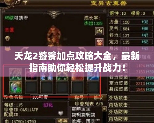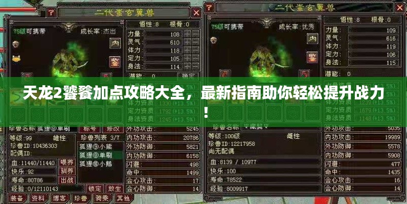 天龙2作为一款热门游戏,其饕餮职业深受玩家喜爱,在游戏中,合理的属性加点对于提升角色实力至关重要,本文将为大家带来最新的天龙2饕餮加点攻略,帮助玩家更好地掌握这一职业。