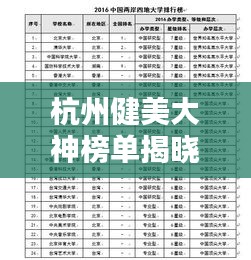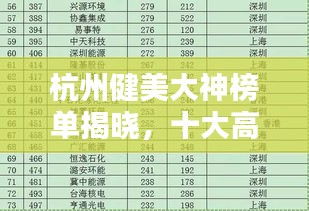 杭州,这座充满历史底蕴与现代气息的城市,不仅在经济、科技、文化等领域取得了显著成就,就连健美领域也有着众多佼佼者,我们就来聊聊杭州健美大神排名前十名,看看这些在健美领域取得非凡成就的人们。