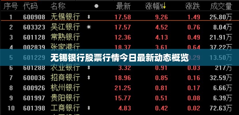 无锡银行股票今日呈现出良好的发展态势,投资者可关注其行业动态、财务数据及未来发展策略,以做出明智的投资决策。