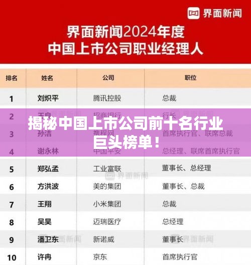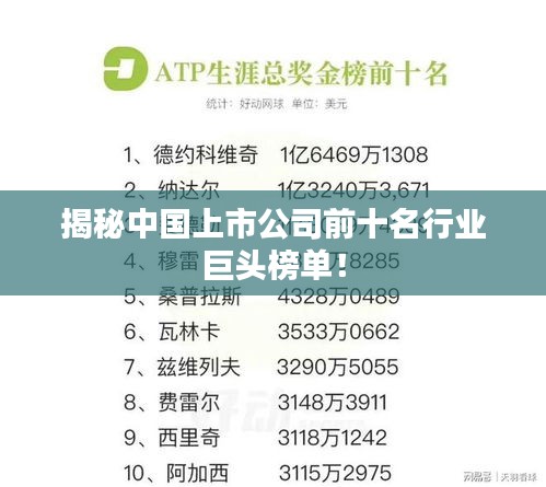 随着科技的飞速发展和市场竞争的加剧,上市公司之间的排名日新月异,本文将为您揭晓中国上市公司前十名的排名榜,带您了解这些行业巨头的发展历程、业绩及未来展望。