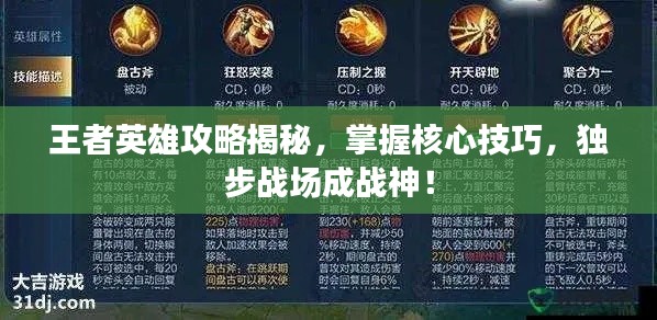 在王者荣耀这款深受玩家喜爱的游戏中,掌握每个英雄的特性与技能是取得胜利的关键,本文将为大家带来一篇关于“王者单个英雄攻略最新”的文章,帮助玩家更好地了解最新英雄动态,掌握核心玩法,成为战场上的独行者。