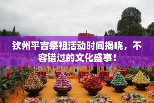 钦州平吉祭祖活动作为中国传统文化的重要组成部分,每年都会吸引大量民众参与,随着时代的变迁,人们对于这一传统活动的关注也越来越高,本文将围绕“钦州平吉祭祖活动时间最新”这一主题,介绍该活动的历史背景、意义以及最新的活动时间等信息。