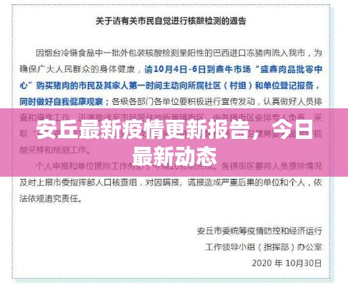 随着全球新冠疫情的持续发展,安丘市作为重要的城市之一,其疫情防控工作备受关注,本文将围绕“最新安丘疫情通报今日”这一主题,介绍安丘市最新的疫情防控情况,包括新增病例、疫苗接种进展、防控措施等方面,以期为广大市民和关注者提供准确、全面的信息。