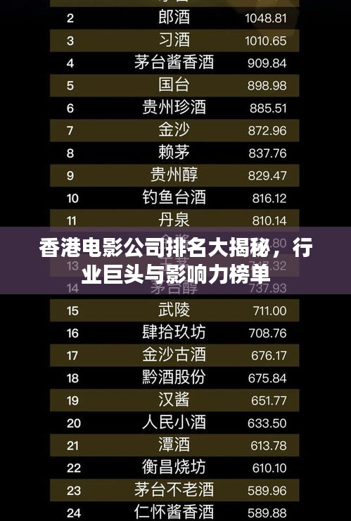 香港电影业自上世纪五六十年代开始崭露头角,逐渐发展成为华语电影的佼佼者,随着电影产业的不断发展,众多电影公司也应运而生,本文将介绍香港电影公司的排名,带您了解这些公司的历史、现状和影响力。