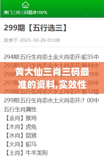 实效性是衡量一组资料是否有用的关键标准。“黄大仙三肖三码”的实效性体现在以下几个方面: