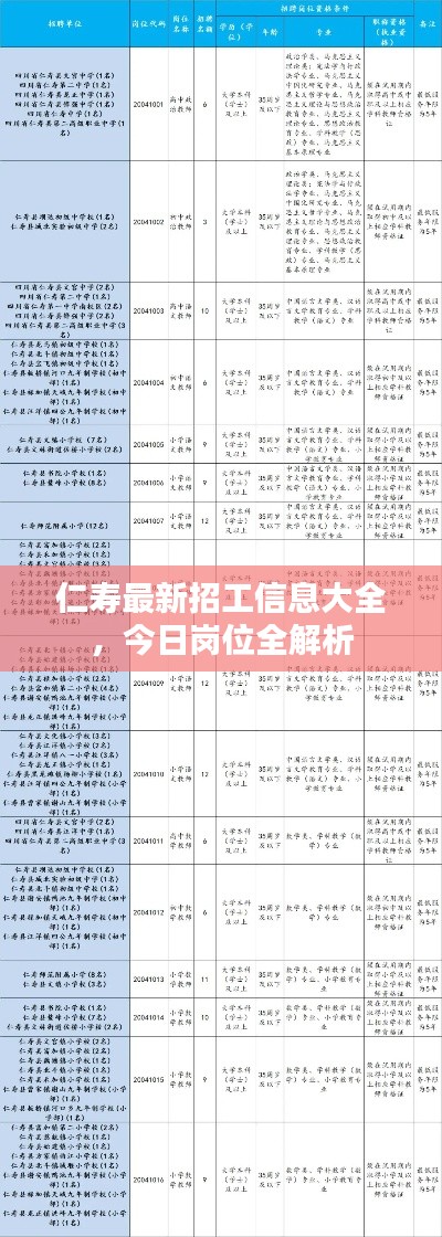 随着经济的持续发展,仁寿县的人才市场需求日益旺盛,本文为您带来仁寿今日的最新招工信息,涵盖各行业的工作机会,以帮助求职者更好地了解当地就业市场,找到适合自己的工作。