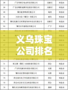 义乌,这座繁华的商业城市,以其独特的魅力和无限的商业机会吸引着世界各地的目光,珠宝行业作为其中的重要一环,更是汇聚了众多优秀的珠宝公司,本文将为您详细介绍义乌珠宝公司的排名,带您了解这些企业的风采。