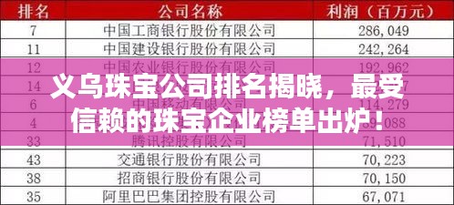 转载请注明来自江西北定建设工程服务体系,本文标题:《义乌珠宝公司排名揭晓,最受信赖的珠宝企业榜单出炉!》