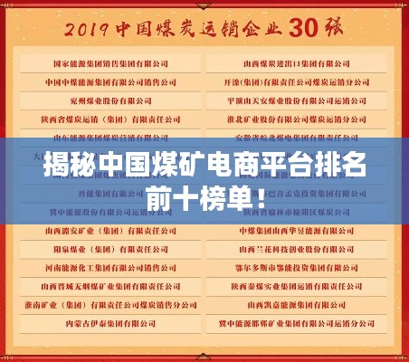 随着信息技术的快速发展,越来越多的传统行业开始转型,煤矿行业也不例外,煤矿电商平台作为新兴的商业模式,正在逐渐改变煤矿行业的传统交易方式,本文将为您介绍煤矿电商平台排名前十名,这些平台在煤矿电商领域具有广泛的影响力,并以其独特的优势和服务赢得了用户的信赖。