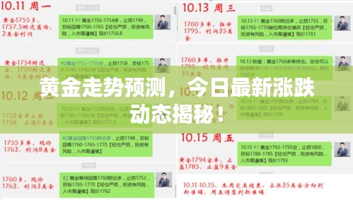 随着全球经济形势的不断变化,黄金市场的走势也备受关注,作为传统的避险资产,黄金价格的波动往往受到多种因素的影响,包括政治、经济、金融等多个方面的因素,本文将结合当前的市场情况,对黄金今日涨跌走势进行预测分析。