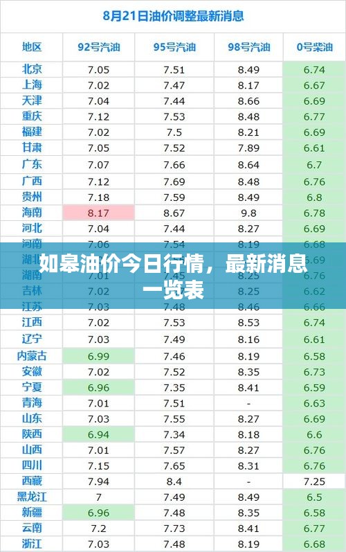 如皋油价今日最新消息表反映了当地油价的最新动态,油价的调整受多种因素影响,具有较大的波动性,车主和消费者需要密切关注油价动态,以便合理安排出行和加油计划,政府、加油站等各方也应加强信息公开和透明度,为消费者提供准确、及时的油价信息。
