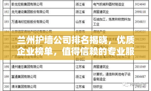 转载请注明来自江西北定建设工程服务体系,本文标题:《兰州护墙公司排名揭晓,优质企业榜单,值得信赖的专业服务!》