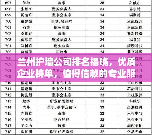 随着城市化进程的加速,护墙板行业逐渐兴起,市场需求不断增长,兰州作为甘肃省的省会城市,护墙板行业也得到了长足的发展,本文将介绍兰州护墙公司的排名及相关信息,以便消费者更好地了解市场并选择优质的服务商。