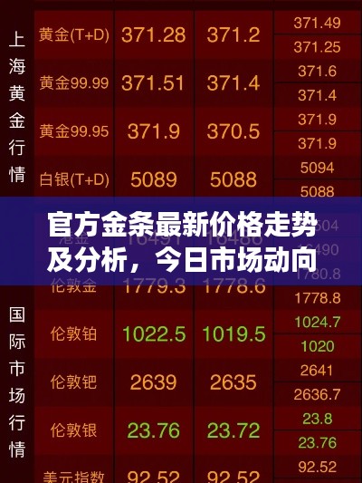 随着全球经济的发展和投资市场的繁荣,黄金作为一种重要的贵金属和大宗商品,其价格变动备受关注,本文将重点关注官方金条今日最新价格,分析市场走势及其背后的影响因素,帮助投资者更好地了解黄金市场。