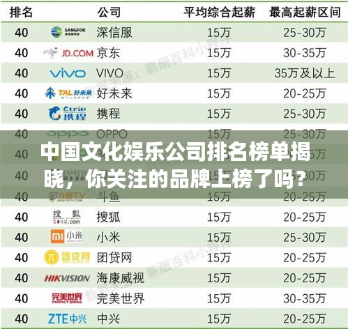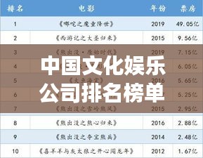 是中国文化娱乐公司的排名榜,这些公司在文化娱乐行业表现出色,凭借丰富的资源、强大的实力和卓越的创新能力,赢得了广大观众的认可和喜爱,随着中国文化产业的不断发展,这些公司将继续发挥重要作用,为中国文化走向世界做出更大的贡献,我们也期待更多新兴文化娱乐公司的崛起,共同推动中国文化产业的繁荣发展。