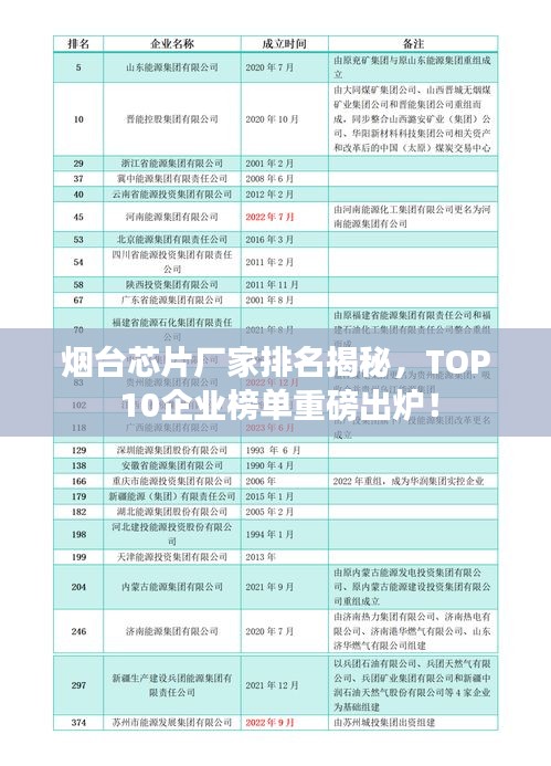 随着科技的飞速发展,芯片产业已成为当今时代的核心产业之一,烟台,这座美丽的海滨城市,也在芯片领域展现出了不俗的实力,本文将为您介绍烟台芯片厂家排名前十名,带您走进烟台的芯片世界。