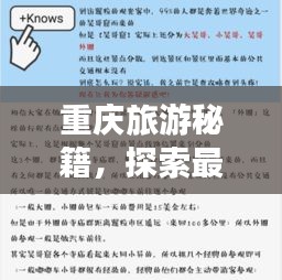 重庆,这座被誉为山城的美食之都,以其独特的魅力吸引着成千上万的游客,你将领略到壮丽的自然风光、丰富的美食文化以及深厚的历史底蕴,本攻略将为你呈现一份精彩的重庆旅游脚本,带你领略这座城市的魅力。