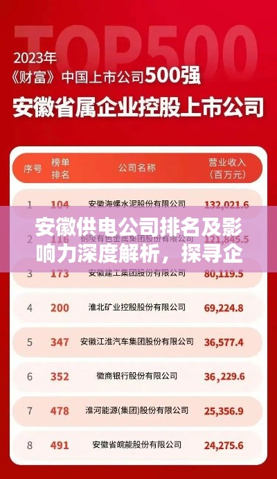 随着安徽省经济的快速发展,电力行业的发展也取得了显著的成绩,供电公司作为电力行业的核心组成部分,承担着为各行各业提供稳定、安全、高效电力供应的重要任务,本文将探讨安徽供电公司的排名及其影响力。