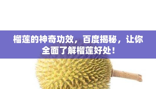 榴莲是一种热带水果,其独特的风味和香气让人难以忘怀,除了美味之外,榴莲还具有许多健康益处,本文将为您详细介绍榴莲的功效,让您更好地了解这种神奇水果的益处。