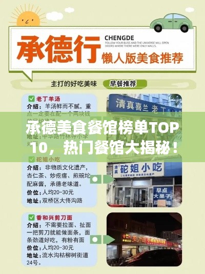承德,这座美丽的城市不仅拥有悠久的历史和丰富的文化遗产,美食文化也是独具魅力,我们将为您揭晓承德美食餐馆排名前十名,带您领略承德美食的魅力。