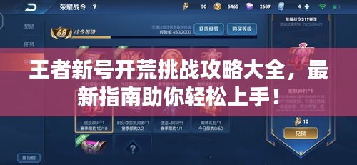 随着王者荣耀这款游戏的持续火热,越来越多的新手玩家加入到这个精彩的竞技世界中,对于新号玩家来说,开荒期是一个既充满挑战又充满机遇的阶段,本文将为你提供一份最新的王者新号开荒挑战攻略,帮助你顺利度过初期,迅速崛起。