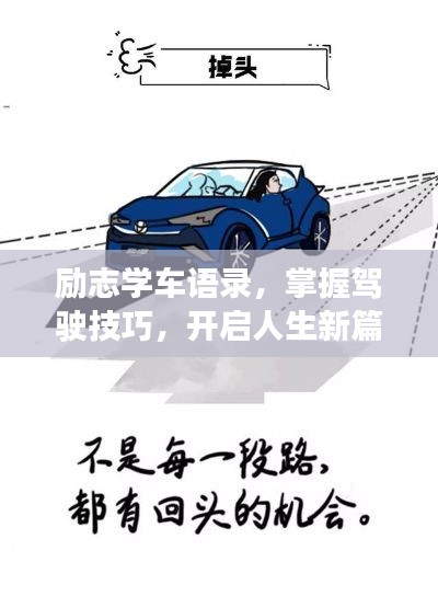 学车的道路充满了挑战和机遇,但只要我们坚定信念,勇往直前,就一定能够成功,让我们勇敢追梦,驾驭未来,不断超越自我,成为更好的驾驶员,用心去学,驾驶人生,安全第一,速度第二,让我们把这些励志语录化作动力,激励我们在学车的道路上不断前行。