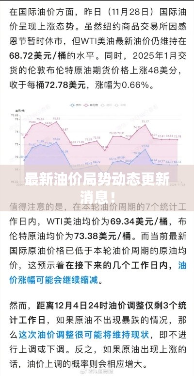 随着全球经济形势的不断变化,油价问题一直是人们关注的焦点之一,油价的高低直接关系到人们的日常生活成本以及各个行业的运营成本,每日的油价局势消息备受关注,本文将为您带来今日油价局势的最新消息。