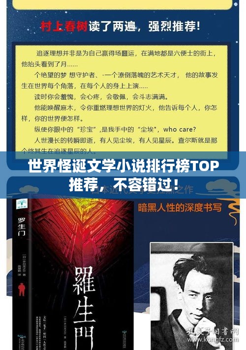 是世界怪诞文学小说的排名中的五部作品它们以其独特的风格和创意赢得了全球读者的喜爱和赞誉这些作品不仅具有极高的文学价值同时也能够激发我们的想象力和创造力带领我们进入一个个神秘而美丽的文学世界。