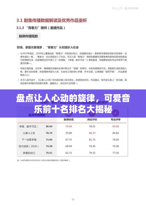 音乐是一种跨越语言、文化和地域的艺术形式,它能够抚慰人心,激发情感,在众多的音乐风格中,可爱音乐以其独特的魅力,成为许多人心目中的最爱,我们就来盘点一下可爱音乐的前十名排名,这些旋律让人心动,带给我们无尽的欢乐。