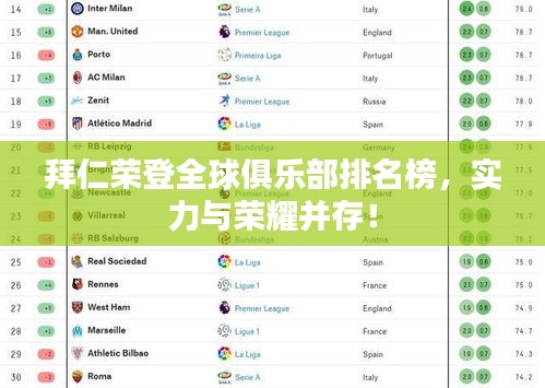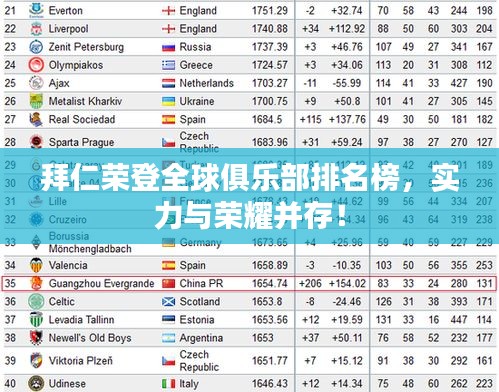 拜仁慕尼黑,这个响彻世界的名字,代表着德国足球的荣耀与辉煌,作为德国和欧洲最为成功的俱乐部之一,拜仁在世界俱乐部排名中始终占据一席之地,本文将探讨拜仁在世界俱乐部排名中的地位及其背后的原因。