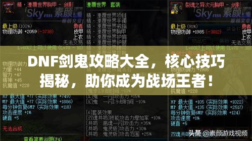 在DNF(地下城与勇士)这款游戏中,剑鬼作为一个近战物理职业,以其灵活多变的技能和强大的输出能力备受玩家喜爱,本文将为大家带来剑鬼的最新攻略,帮助玩家更好地掌握这一职业的核心技巧,成为战场霸主。