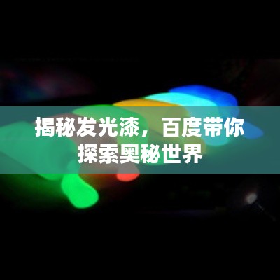 发光漆作为一种神秘而实用的新型材料,其独特的发光性能使其在多个领域得到广泛应用,通过百度一下,我们可以全面了解发光漆的奥秘,探索其在未来的无限可能,在这个信息爆炸的时代,让我们继续借助互联网的力量,解密更多未知,探索更多新知。