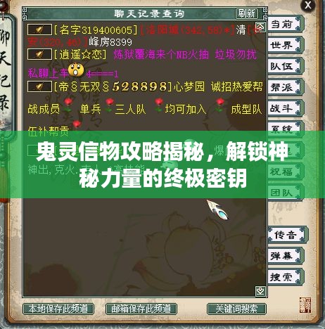 鬼灵信物作为游戏中重要的道具,对于提升玩家实力和游戏体验具有重要意义,通过本文的攻略建议,希望能够帮助大家更好地获取、升级和使用鬼灵信物,解锁神秘力量,享受游戏的乐趣,随着游戏的不断更新,鬼灵信物的功能和作用将更加丰富和多样化,玩家需要不断学习和适应,以应对游戏中的挑战。