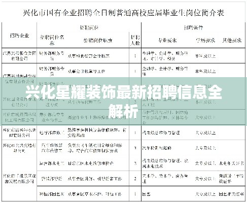 随着社会的不断发展,装饰行业也在持续繁荣,兴化星耀装饰作为业内的佼佼者,一直在寻求有才华、有激情的人才加入其团队,本文将为您详细介绍兴化星耀装饰的最新招聘信息,带您了解这里的职业发展机会。