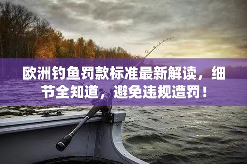 随着休闲活动的多样化,钓鱼这项活动在欧洲也受到了广大民众的喜爱,为了维护水域生态平衡及渔业资源,欧洲各国对钓鱼活动制定了一系列的法规,其中罚款标准作为规范钓鱼行为的重要手段之一,本文将详细介绍欧洲钓鱼罚款标准最新版的相关内容,帮助钓鱼爱好者们更好地了解和遵守规定。