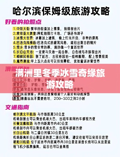 满洲里,这座位于中俄边境的小城,以其独特的地理位置和浓厚的异域风情吸引了无数游客,尤其是在冬天,满洲里的风光更是别具一格,银装素裹的街道、浓厚的节日气氛以及独特的冰雪活动,让人流连忘返,以下是一份满洲里冬天旅游攻略,希望能为您的旅行提供一些帮助。