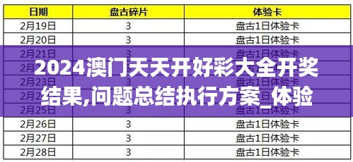《2024澳门天天开好彩大全开奖结果,问题总结执行方案_体验版7.769》是澳门政府针对"好彩"彩票业务进行的一项全面政策分析和执行方案。好彩作为澳门的核心公益彩票项目,其开奖结果的公正性和透明度对于维护博彩市场的秩序和信誉至关重要。文章旨在提供一个关于好彩彩票开奖、问题汇总以及解决方案的详细总结,以期给公众一个全面的了解和安心体验。