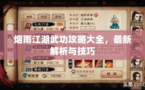 《烟雨江湖》作为一款备受玩家喜爱的武侠游戏,其丰富的剧情、唯美的画面以及独特的武功系统深受广大玩家欢迎,本文将为大家带来最新的烟雨江湖武功攻略,帮助玩家更好地掌握游戏技巧,提升角色实力。