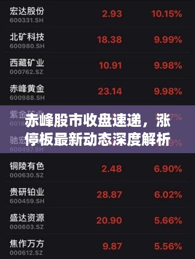 随着股市的波动日益频繁,投资者对于最新股市动态的关注度越来越高,作为重要的经济指标之一,股市的走势不仅反映了企业的发展状况,也为投资者提供了丰富的投资机会,本文将围绕“今日赤峰涨停了吗最新”这一关键词,对赤峰地区的股市收盘情况进行详细解读和分析。