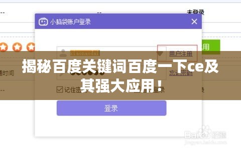 转载请注明来自江西北定建设工程服务体系,本文标题:《揭秘百度关键词百度一下ce及其强大应用!》