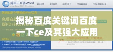 随着互联网的普及和搜索引擎的发展,搜索引擎已经成为人们获取信息的重要途径之一,百度是中国最受欢迎的搜索引擎之一,拥有庞大的用户群体和丰富的搜索功能,本文将介绍关于关键词“百度一下ce”的相关信息,包括其在搜索引擎中的应用以及相关的功能特点等。