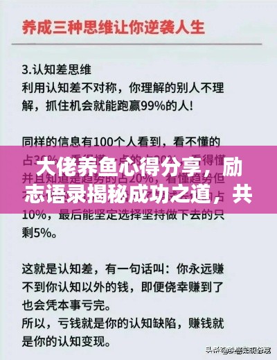 在追求成功的道路上,每个人都在不断奋斗,正如养鱼一样,需要耐心、智慧和努力,本文将以“大佬养鱼励志语录”为主题,探讨成功背后的故事,分享养鱼过程中的智慧与经验,激励我们在人生的旅途中勇往直前。
