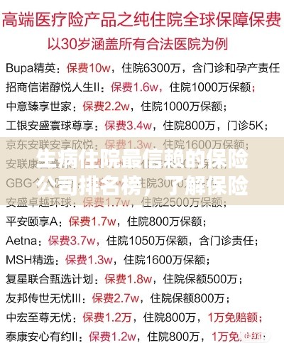面对生活中的不确定性,生病住院是我们无法完全避免的风险之一,在这个关键时刻,一个可靠的保险公司及其医疗保险计划能够为我们提供重要的经济支持,本文将介绍生病住院保险公司排名榜,帮助您了解哪些保险公司在您最需要时值得信赖。