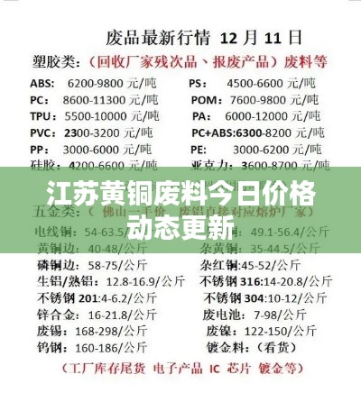 随着工业领域的持续发展,黄铜作为一种重要的合金材料,其需求一直保持稳定增长,江苏地区作为我国的经济大省,其黄铜市场也备受关注,本文将为您详细介绍江苏黄铜废料价格的最新动态。